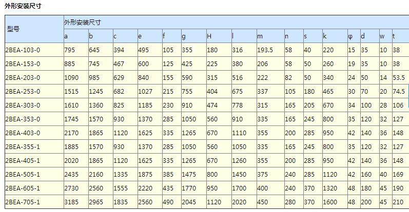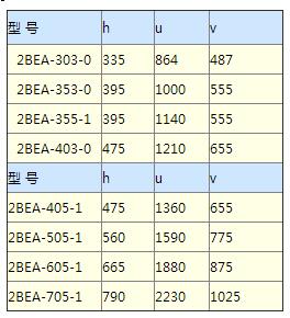 注:以上所選電機功率可在大多工況下工作。如排氣口壓力較高(0.02~0.05MPa),則應(yīng)相應(yīng)加大電機功率;如2BE1真空泵正工作時軸功率較小,也可選用接近軸功率的電機功率,如此更為節(jié)能。