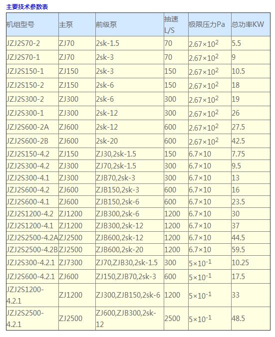 J ZJ 2S 1200 -- 4.2 (J)機組 (ZJ)主泵為羅茨真空泵 (2S)初級前級泵為雙級水環泵 (1200)主泵抽速L/S (4.2)泵抽速配比代號